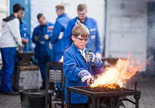 In Kooperation mit der Meyer Werft ist das Mobile Schmiedelabor wieder auf der Ideenexpo in Hannover vertreten. Auf dem Platz der Ideen, Stand: PI-03, können Kinder und Jugendliche die Kunst des Schmiedehandwerks erleben.
