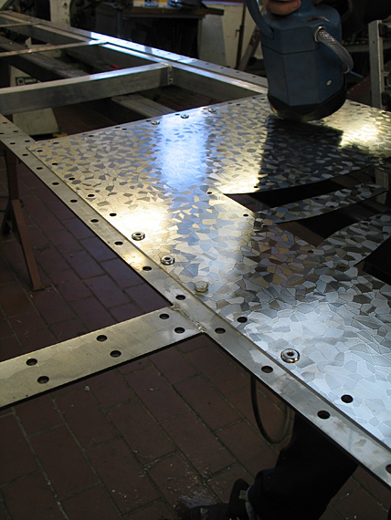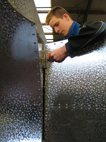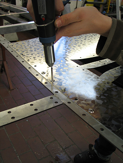 | Viele Tausend Nieten sind nötig, um das Mobile Schmiedelabor in Form zu bringen. |