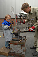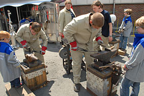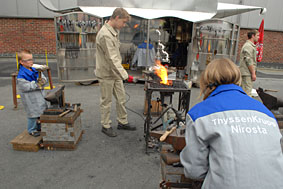 Tag der offenen Tür bei der ThyssenKrupp Nirosta GmbH in Dillenburg. In diesem Werk wird das Material hergestellt, aus dem die Außenhülle des Mobilen Schmiedelabors gefertigt ist.