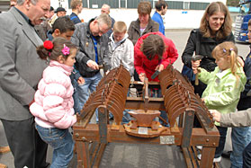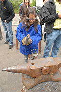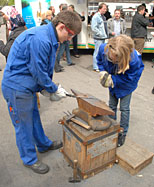Die Auzubis der Aluminiumschmiede von Otto Fuchs halfen Andreas Rimkus tatkräftig beim Schmieden mit den jungen Gästen.