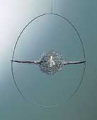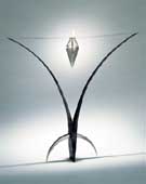 Aus dem Zusammenspiel der gegensätzlichen Werkstoffe Metall und Glas entstehen Lichtobjekte von sakraler Anmutung. Undurchsichtigkeit und Stabilität des einen Materials verbinden sich mit der Transparenz und Zerbrechlichkeit des anderen zur homogenen Form. Die Leichtigkeit der Lichtobjekte läßt uns den Atem anhalten: sie scheinen zu schweben. |